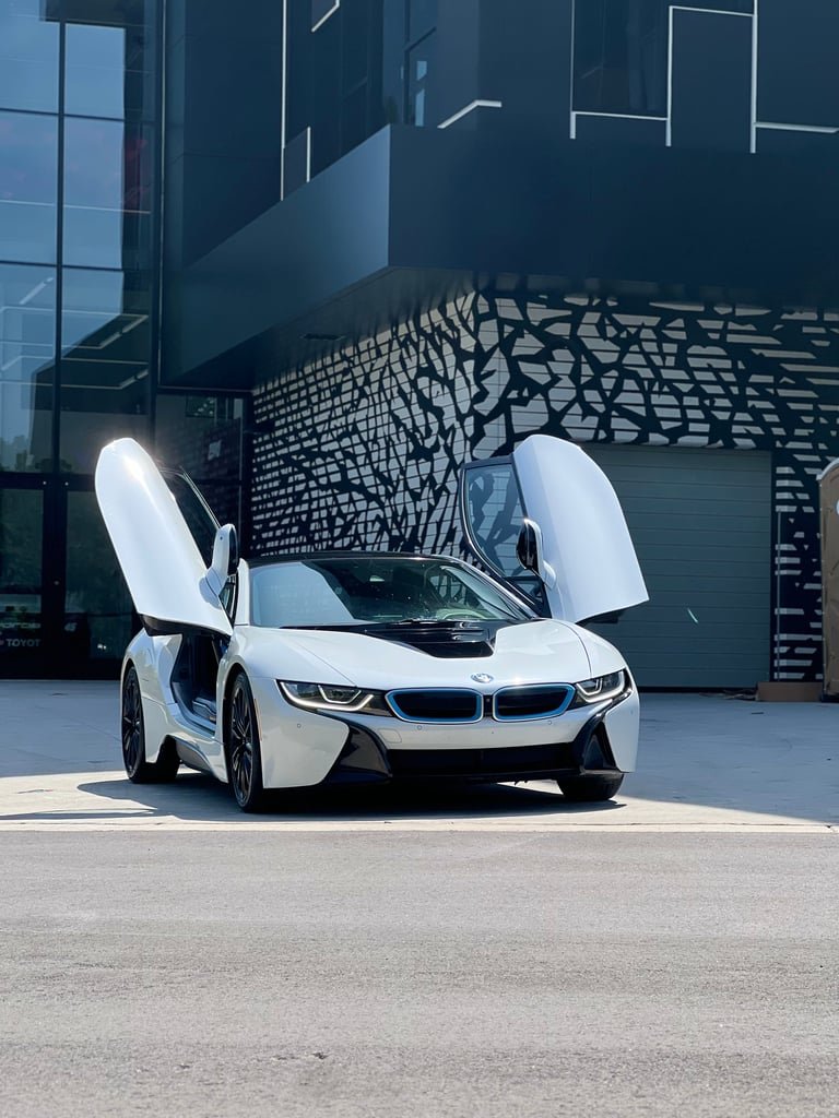 Drive a BMW i8 in Charlotte and experience one of the most iconic hybrid supercars ever built. This exotic car rental in Charlotte delivers the perfect mix of performance, efficiency, and futuristic design, making it one of the most sought-after luxury car rentals in the city. With its signature scissor doors, aggressive styling, and turbocharged hybrid engine, the BMW i8 offers a driving experience that stands out whether you are cruising through Uptown Charlotte, arriving at a special event, or exploring the city in style.