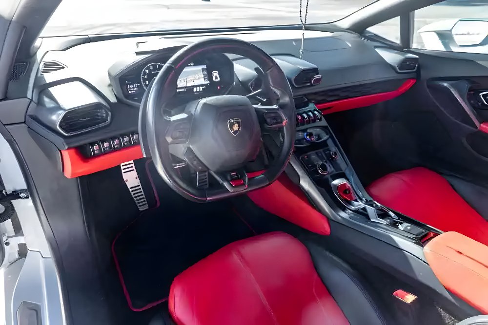 Inside, the Huracan features a high-tech, driver-focused cabin with a 12.3-inch digital instrument cluster and an intuitive infotainment system. Premium leather sport seats provide excellent support, even during spirited driving, while advanced driver assistance features and a high-quality sound system elevate comfort and control.