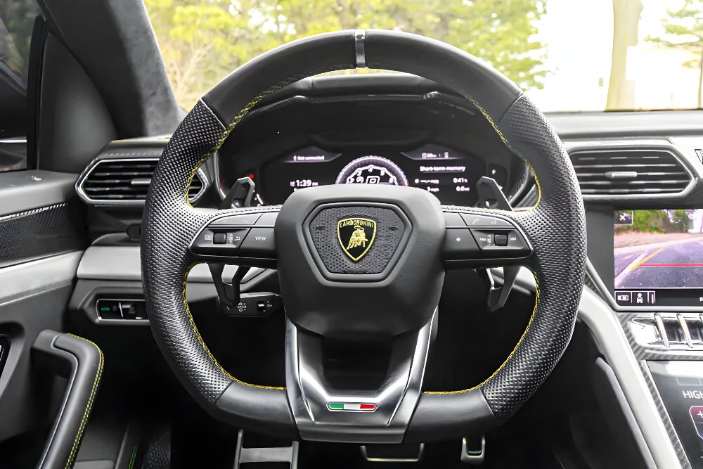 The Urus features sculpted bodywork, signature Lamborghini lighting, carbon-ceramic brakes, and advanced drive modes that adapt to your driving style. Its aggressive stance and unmistakable silhouette ensure attention wherever it goes, while cutting-edge technology keeps the experience controlled and intuitive behind the wheel.
