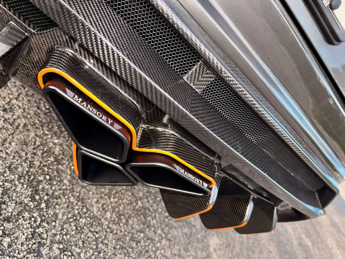 Equipped with an aggressive Mansory carbon fiber widebody kit, custom aerodynamic accents, and large forged wheels, this Urus delivers a powerful road presence from every angle. Under the hood, a twin-turbo V8 producing over 650 horsepower launches the SUV from 0 to 60 mph in just over three seconds, offering relentless acceleration and precise control.